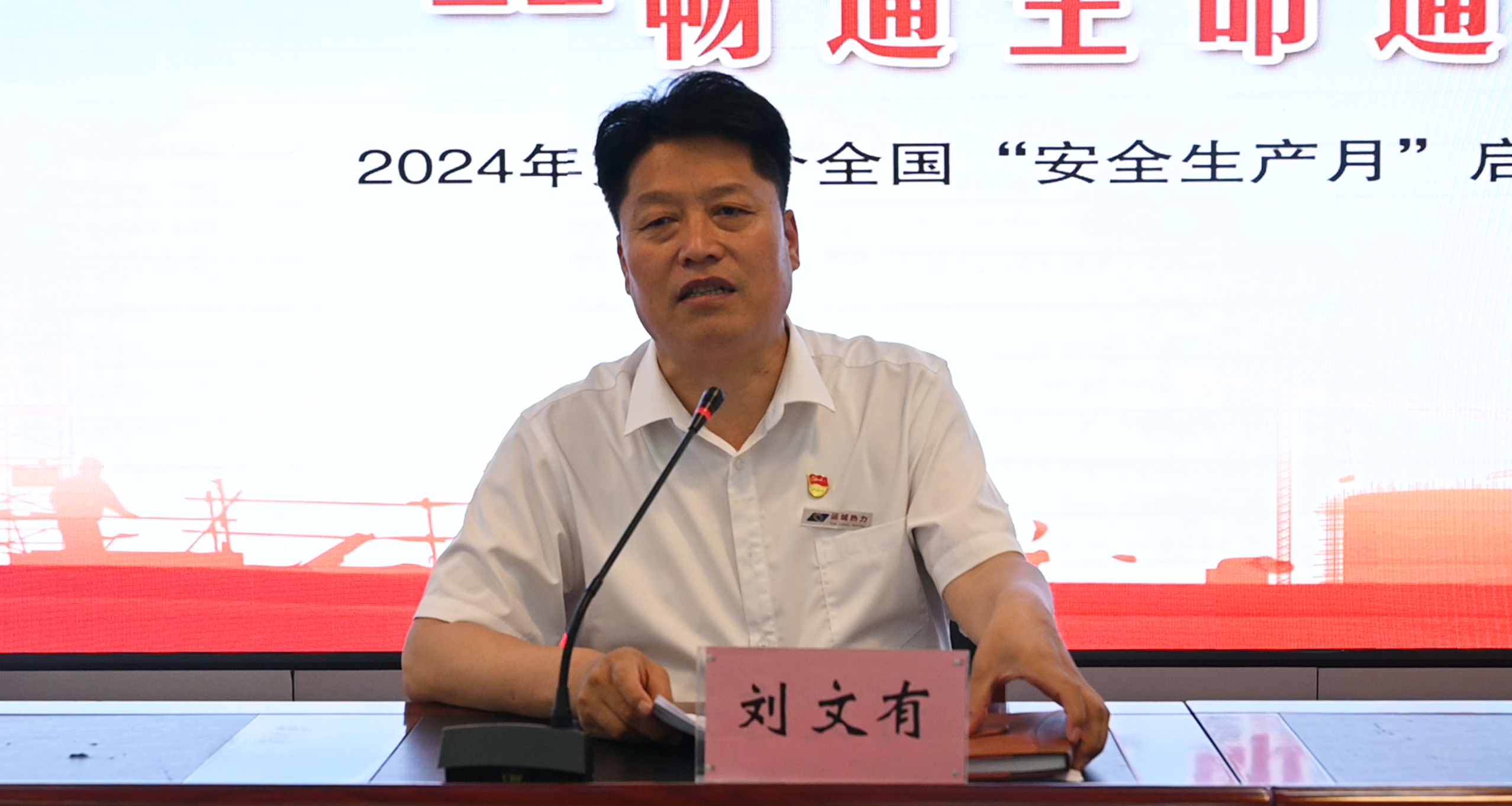 (公司党委副书记、总经理刘文有宣布热力公司2024年”安全生产月“活动正式启动。)