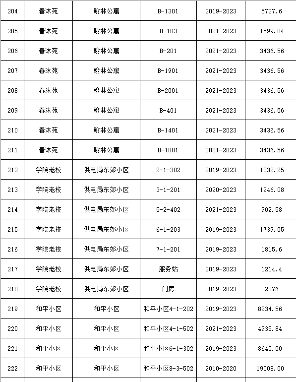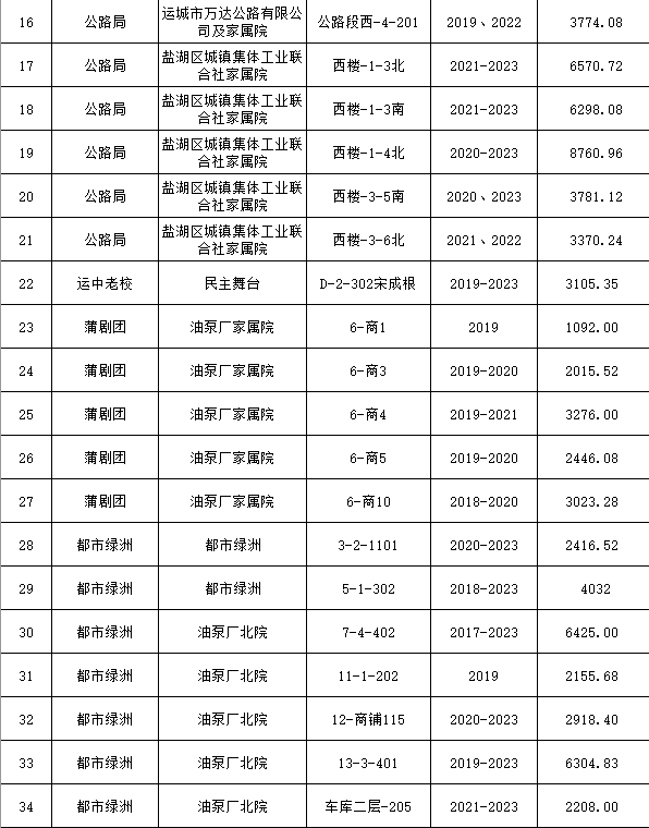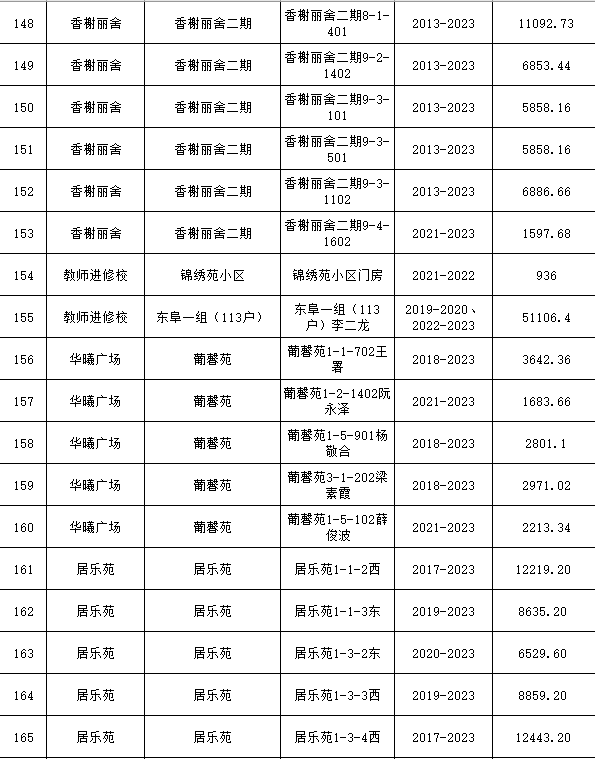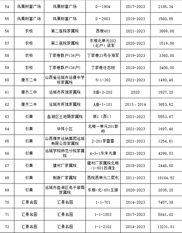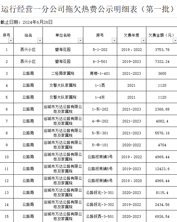 运城市热力有限公司关于拖欠热费用户名单的公 示