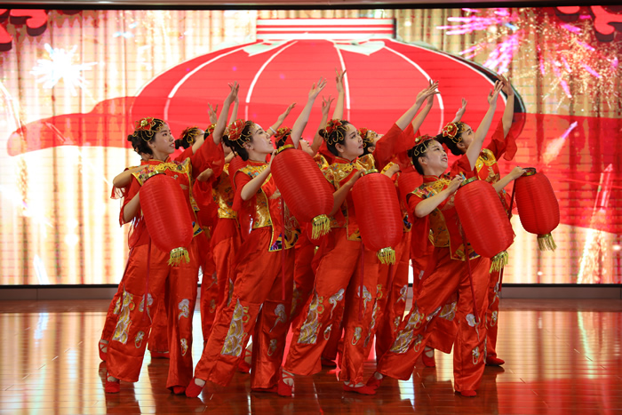 文艺演出在开场快闪《我和我的祖国》中拉开序幕,激情澎湃的《五星红旗》、《国家》、《祖国的好山河寸土不让》,唱出了热力人的爱国热情;吉祥如意的《红灯笼》、步调一致的《咱们工人有力量》跳出了热力人的团结一心;气势恢宏的《锦绣中华》展现了热力人的多才多艺;饱含深情的诗歌朗诵《牢记新使命、追梦新时代》表达了热力人对中国梦的不懈追求;特别是互动环节,全体员工挥动手中的五星红旗,共同唱响红歌,共同歌唱祖国。节目主题鲜明、形式多样,热力职工用动情的舞蹈、深情的朗诵、精湛的演绎,礼赞祖国七十年发展历程,抒发对党和国家的无限热爱,向祖国母亲献上最美好的祝福。