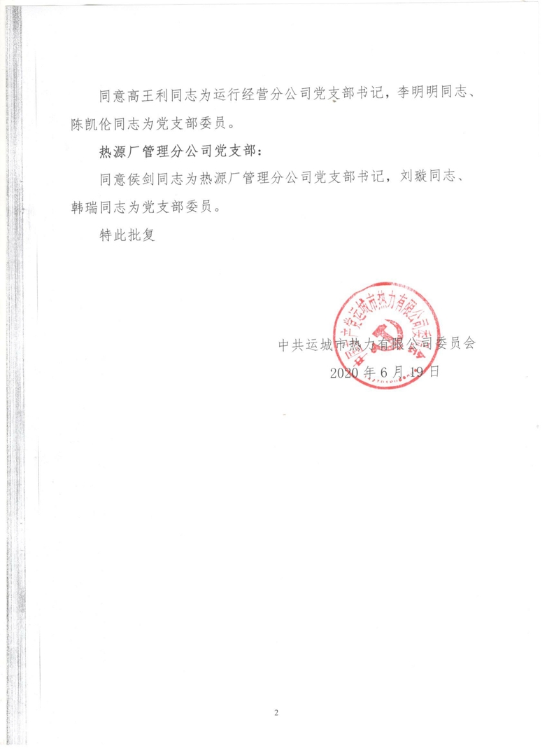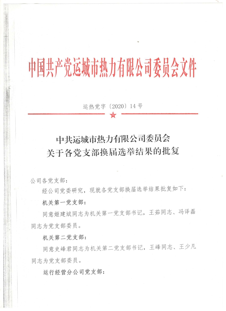 关于各党支部换届选举结果的批复