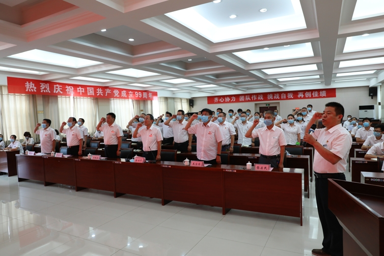 值此建党99周年之际,全体员工齐聚一堂,共同纪念党的生日,重温党的历史,表达对党的忠诚,始终不忘初心,始终牢记使命,以习近平新时代中国特色社会主义思想为指引,不断增强“四个意识”,坚定“四个自信”,做到“两个维护”,汇聚建设“大热力”的强大力量。